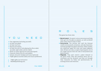 The game consists of an introductory booklet and two organizer booklets. It also comes with character sheets and a prepared story playset: Asteroid Storm.